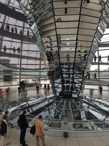 Am nächsten Morgen empfängt uns die Hauptstadt mit Sonnenschein. Wir steigen in die uns bald vertraute U9, Richtung City. Der Besuch der Reichstagkuppel, Fahrt auf der Spree, Stadtrundfahrt und Exkursionen zu Fuß, z.B. Potsdamer Platz, Brandenburger Tor und Beate-Uhse-Museum eröffnen uns neue, erregende Perspektiven.