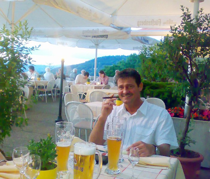 Schneckentöpfle, Chateau Briand und leichtem französischem Weißwein die Abendsonne, die sich schmunzelnd dem Zigarrenduft der abschließend gerauchten Havannas und der lauen Sommernacht ergab.