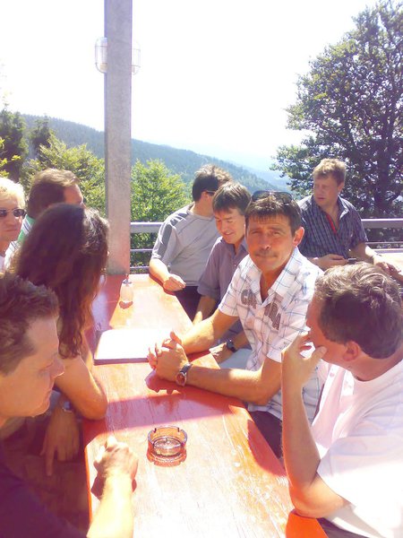 Ganz im Zeichen der EM-Bergtour der DFB-Auswahl führte der Weg dann hinauf auf den 1300m hohen Berg „Schauinsland“ – mit der ersten Großkabinenumlaufseilbahn der Welt, gebaut 1930. Da die Bahn 1964