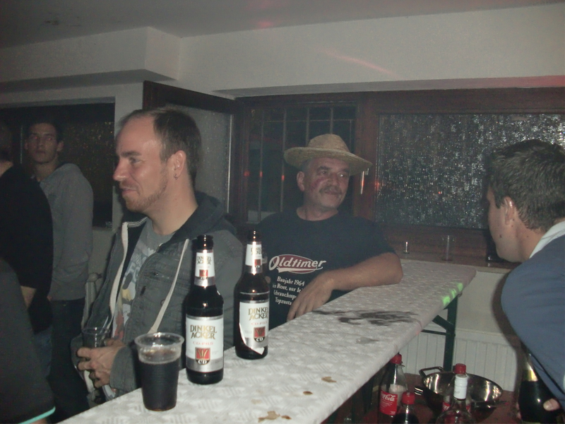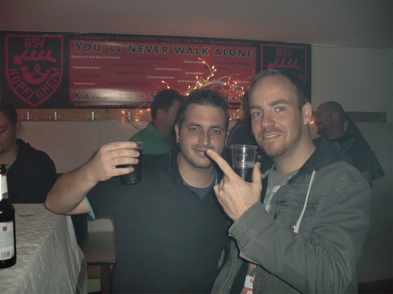 Nachdem die Spieler nun gut gestärkt in den Freitag, 31,10,2014 starten konnten, waren sie gleich top motiviert und vorbereitet für das nächste Event was sich gleich am Abend anschließen sollte. Da wir in den letzten Jahren wieder einige Neuzugänge bei uns begrüßen konnten und einige junge, talentierte Spieler aus der A-Jugend auf dem Sprung zu den Aktiven sind, sollte es mal wieder Zeit für ein Einstandsfest sein. So wurden die Kabinen, wie auch die Dusche, zu einer großzügigen Partylandschaft umfunktioniert. Mit Lichtschläuchen, Lasern und anderen Lichteffekten wurde eine einmalige Clubatmosphäre geschaffen, die zum Tanzen einlud. Unser DJ Häcki brachte die Menge durch sein breitgefächertes Musikrepertoire so richtig zum Kochen. Natürlich wurden auch wieder zahlreiche Fussballgespräche über die aktuellen Geschehnisse im Amateur- als auch im Profibereich geführt. Jedoch konnte es manchmal auch schwierig sein seinen Gesprächspartner im dichten Rauch der Nebelmaschine noch zu erkennen. Auch für das leibliche Wohl aller Anwesenden war gesorgt, so konnten sich die Spieler bei Leberkäs und Fleischküchle mal eine Auszeit vom Dancefloor gönnen oder sich an der Bar von unseren Barkeepern verwöhnen lassen. Ein rundum gelungenes, geselliges Fest was bis in die Morgenstunden dauerte!