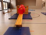 In dieser Turnstunde reisten wir in die Steinzeit und trafen dort u. a. Mammuts (Pferd auf Rollbrettern)