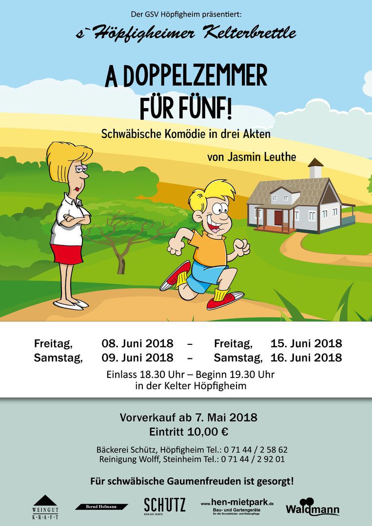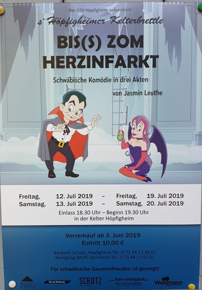 Der Vorverkauf startet ab sofort in der Kreissparkasse Steinheim und der Bäckerei Schütz in Höpfigheim. Karten gibt es zu 8,-€, Abendkasse 10,-€. Beginn: 21 Uhr. Einlass und Bewirtung ab 19:00 Uhr.