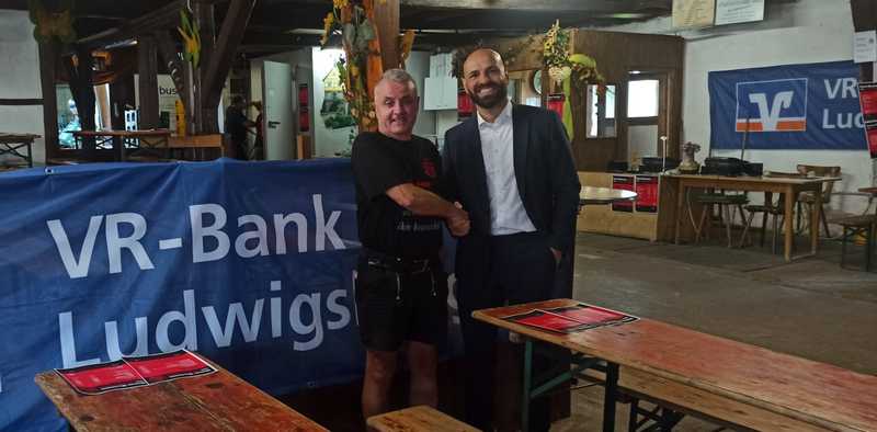 Herzlichen Dank an alle Spender und Sponsoren die uns die Tombola und das Fest unterstützt haben und herzlichen Glückwunsch an die Gewinner. Danke auch an alle, die unserem Fest den finanziellen Rückhalt gegeben haben. Einerseits für die Werbung in der Zeitung, für die coolen Helfer Shirts und für die Geldspenden. Ein besonderer Dank geht an die VR Bank Ludwigsburg, die uns über den Gewinnsparverein der Volks-und Raiffeisenbanken Baden-Württemberg e.V. schon das zweite Mal unterstützt. Dieses Jahr bekommt der GSV einen Kühlschrank. Herr Damianidis, Bereichsleiter Privatkunden in der Region Marbach hat uns dazu kurz besucht.