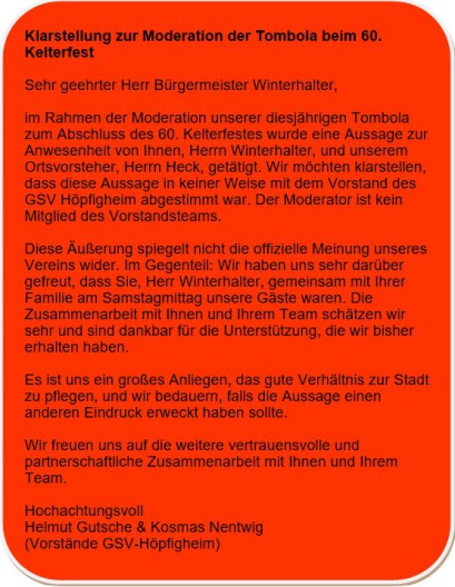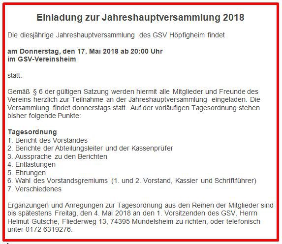 Daher hat der GSV Höpfigheim folgendes beschlossen:
