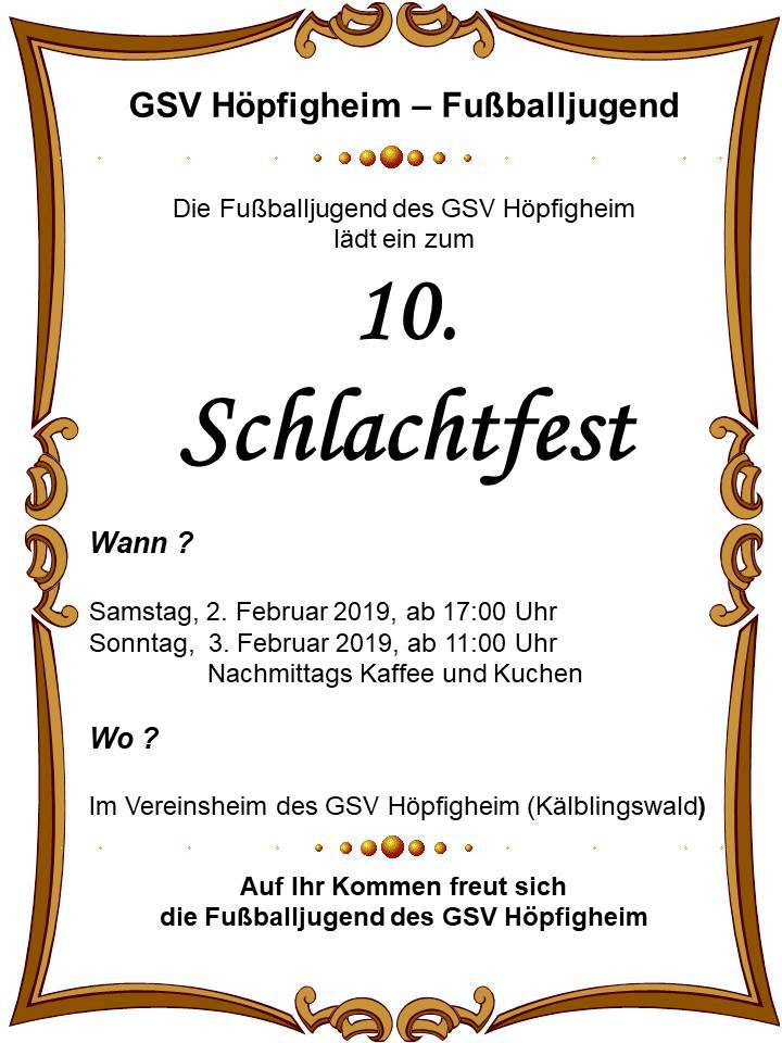 Über die Details der Veranstaltungen informieren wir in den kommenden Wochen ausführlich. Der GSV Höpfigheim freut sich schon jetzt auf ihr Kommen und gemeinsame unterhaltsame Stunden.