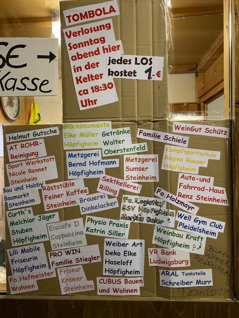 Doch was wäre so ein Fest ohne seine Helfer ? An dieser Stelle gilt unser Dank an alle, die in irgendeiner Form zum Gelingen des Festes beigetragen haben. Wir sind stolz auf unser Fest und dass wir das aus eigener Kraft im Ort so klasse gestemmt haben Wir freuen uns schon auf’s 60.Kelterfest 2024 gemeinsam mit euch und allen Freunden und Gästen des GSV Höpfigheim.