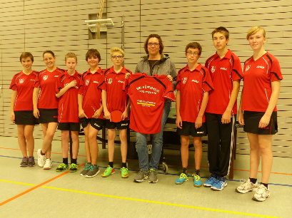 Unsere Damen und Jugendspieler starten mit neuen Trikots in die neue Saison. Dank finanzieller Unterstützung durch die Firma Klein Stuckateure konnten wir die schicken neuen Trikots beschaffen. Auf dem Bild (Mitte) Frau Silke Straub bei der Übergabe der Trikots. Herzlichen Dank dafür!!!